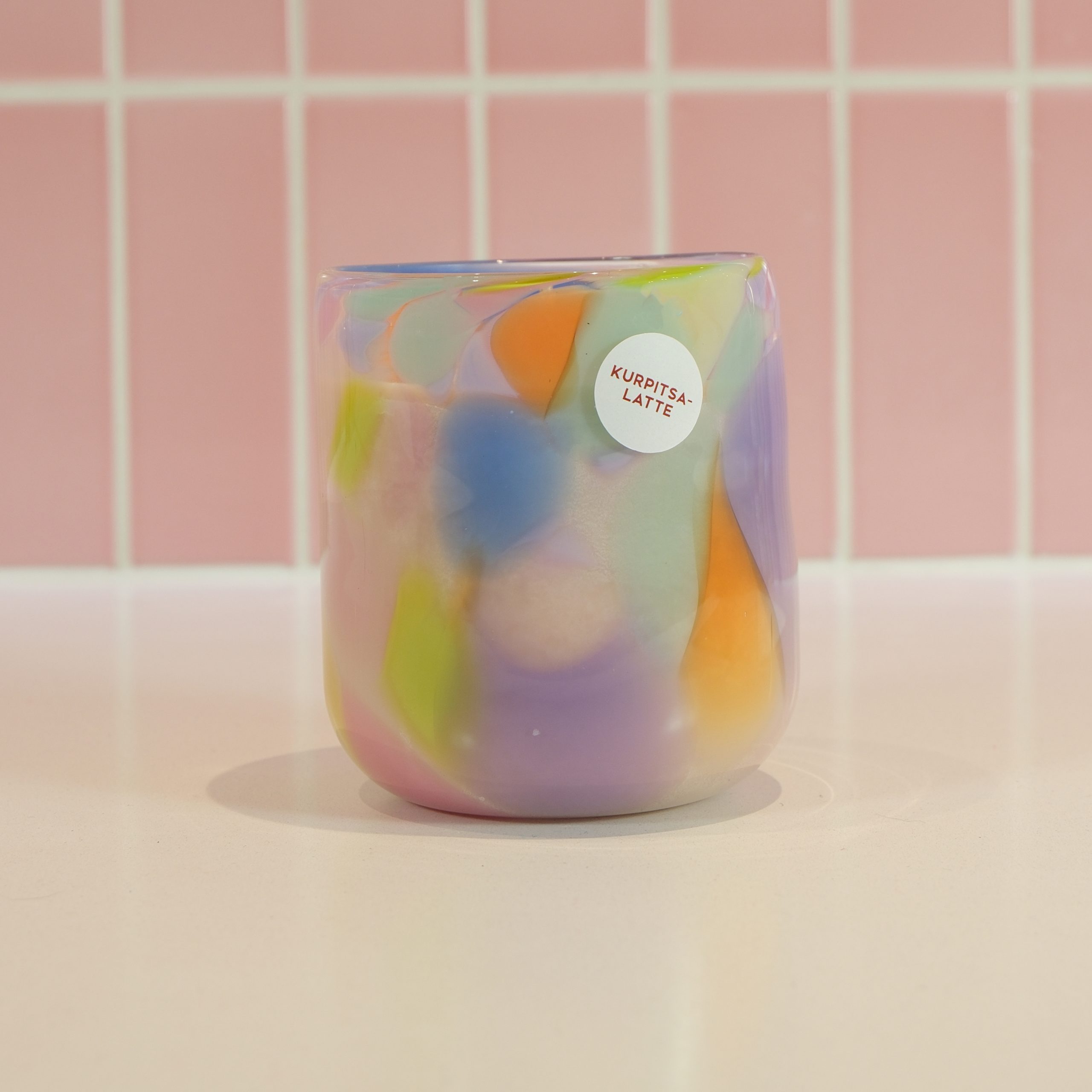 Jokainen lasi on omanlaisensa, ja sarjan lasien koot ja värit vaihtelevat kauniisti. Kynttilä on valettu ekologisesta oliiviöljyvahasta omalla pajallamme Kustavissa. Upeat tuoksut viimeistelevät elämyksen.