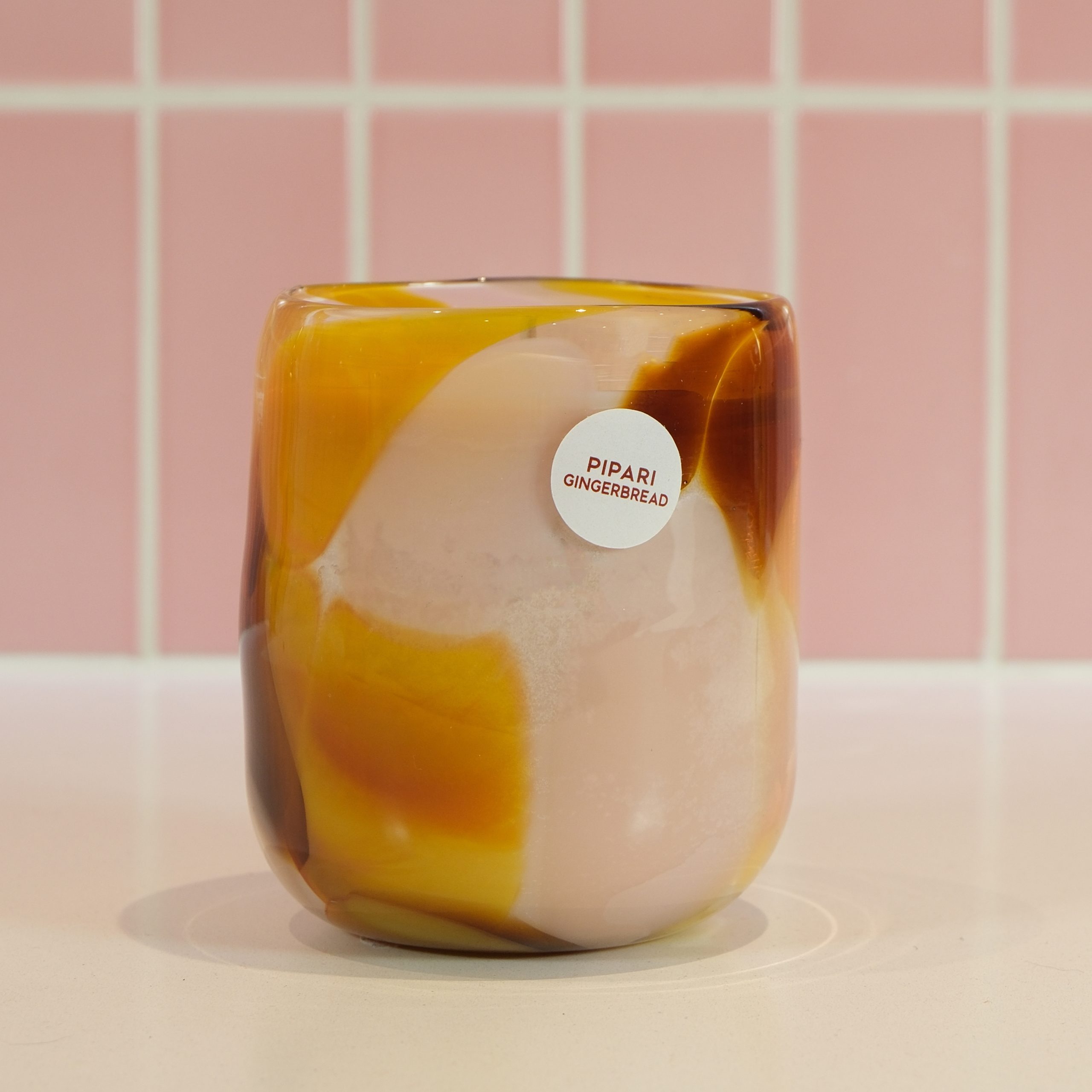 Olemme luoneet todella uniikin sarjan kynttilöitä, jotka on käsin valettu suupuhallettuihin laseihimme.